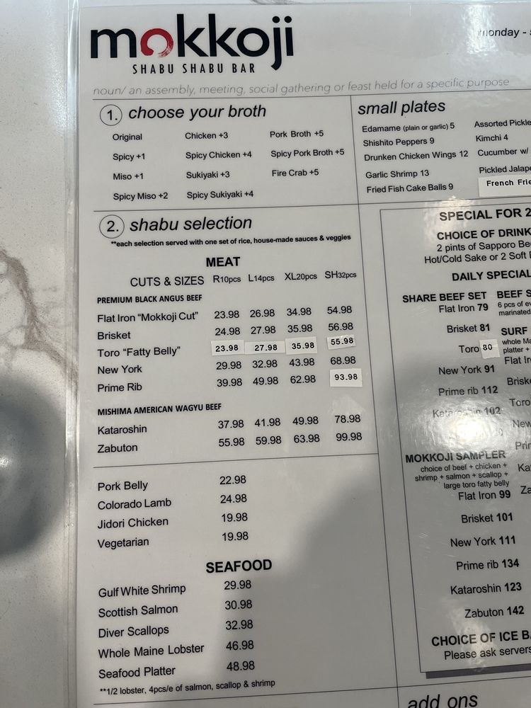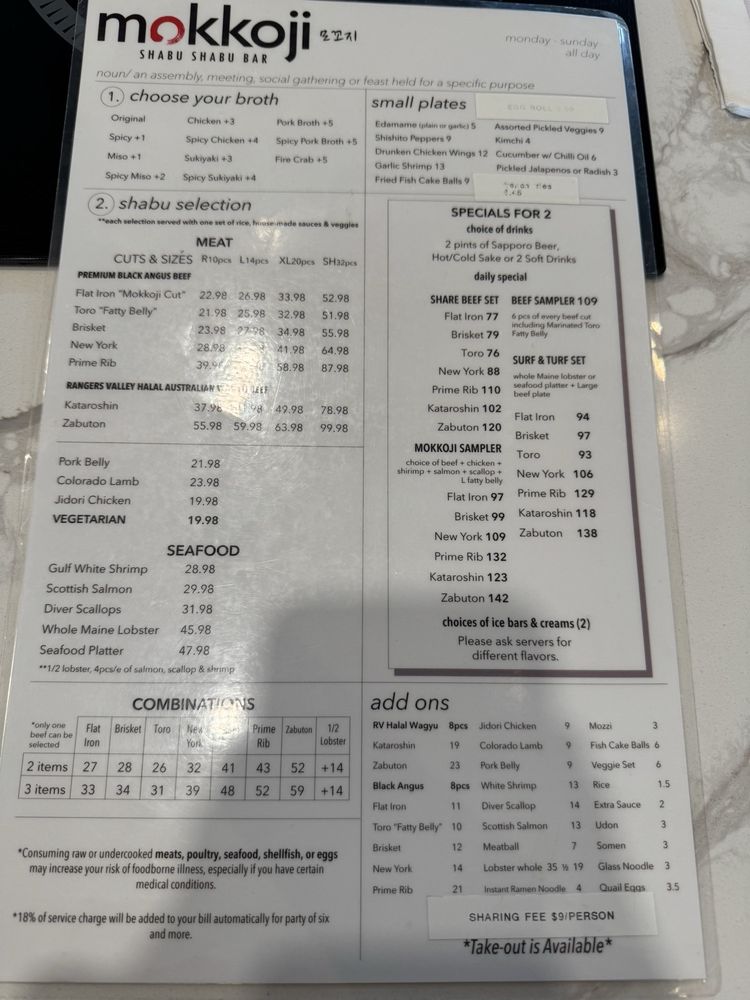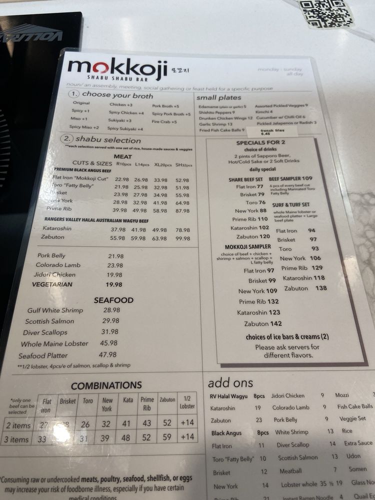 Mokkoji Shabu Shabu, located in Orange, CA, offers a trendy and casual dining experience with a focus on hot pot dishes. The restaurant provides vegan and vegetarian options, wheelchair accessibility, and free Wi-Fi, among other amenities. Customers rave about the flavorful brisket sets, fresh toppings, and generous portions. The attentive service and clean ambiance create a welcoming atmosphere for diners. Special mentions go to the marinated meats and spicy broth options, setting Mokkoji apart from other shabu restaurants. Whether enjoying a meal with friends or a special celebration, Mokkoji Shabu Shabu promises a memorable dining experience with exceptional dishes and attentive staff. A must-visit for hot pot enthusiasts and food lovers alike.